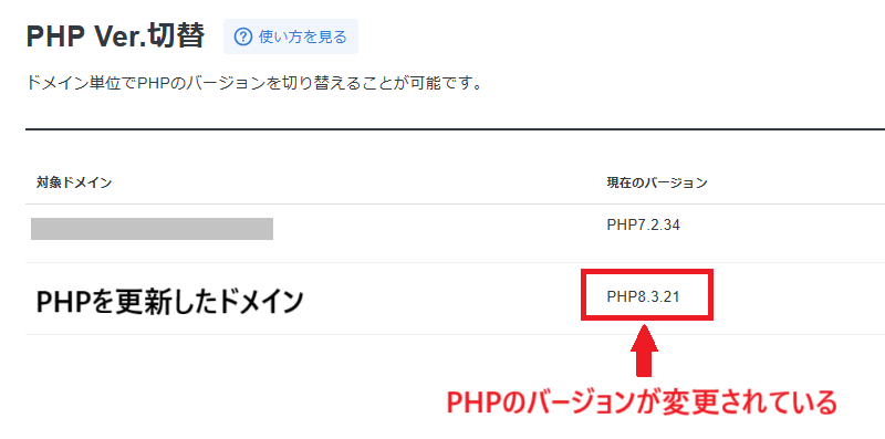 7.PHPのバージョンが変更されました。