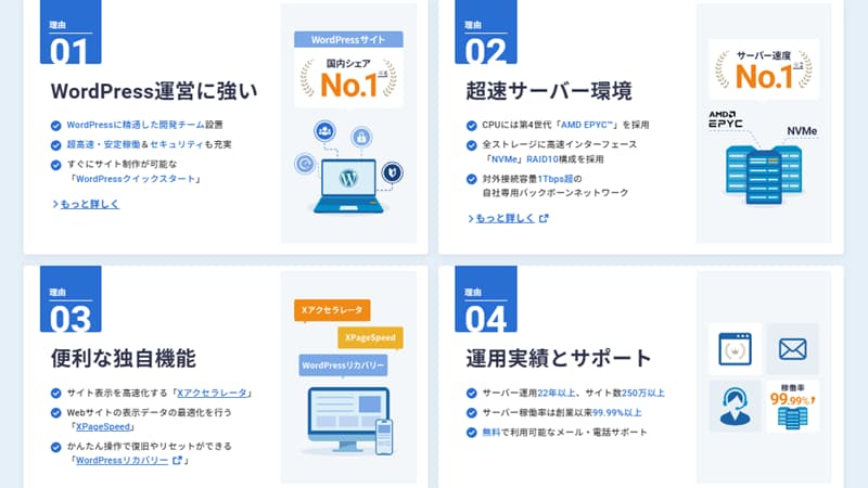 表示速度・安定性・WordPressの始めやすさ・サポート体制、このすべてが高水準でバランスよく整っているからです。
