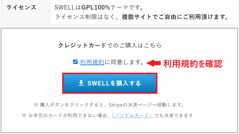 2.利用規約に同意すればチェックを入れて、「SWELLを購入」をクリックします。