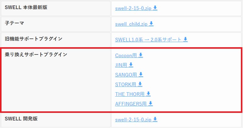 - テーマ最新版や子テーマなど、SWELL製品のダウンロード