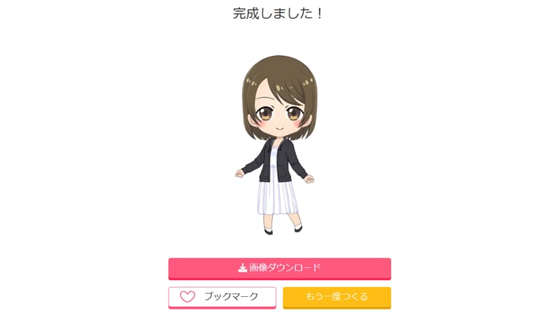 3.ちびキャラが完成すれば、左下の「完成」をクリックします。