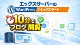 エックスサーバーの魅力や契約方法、WordPress開設まで10分で完了できる「WordPressクイックスタート」を紹介しています。