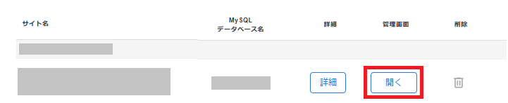 9.WordPressのインストールが完了しました。「開く」ボタンをクリックすると、WordPressの管理画面にログインします。